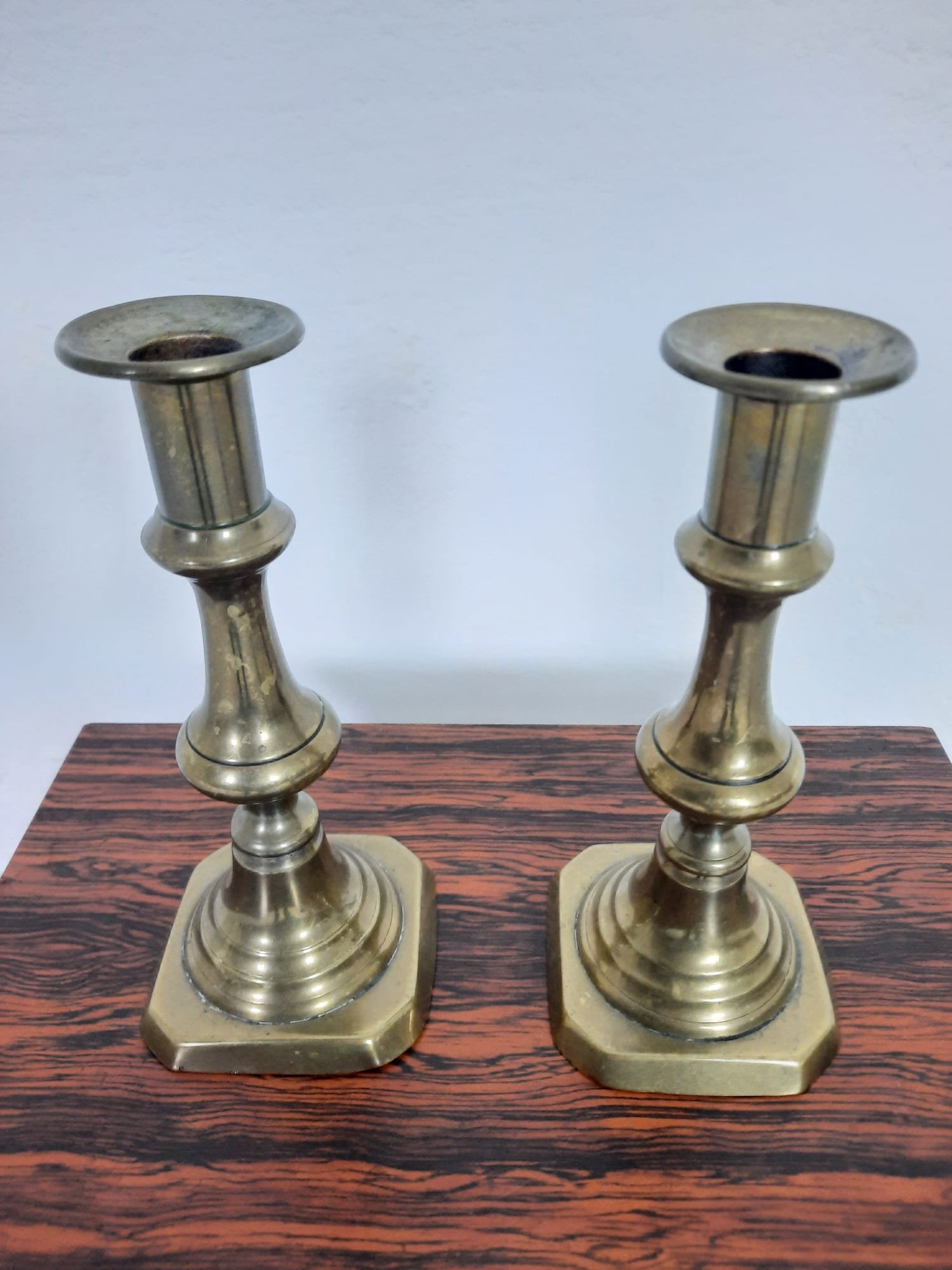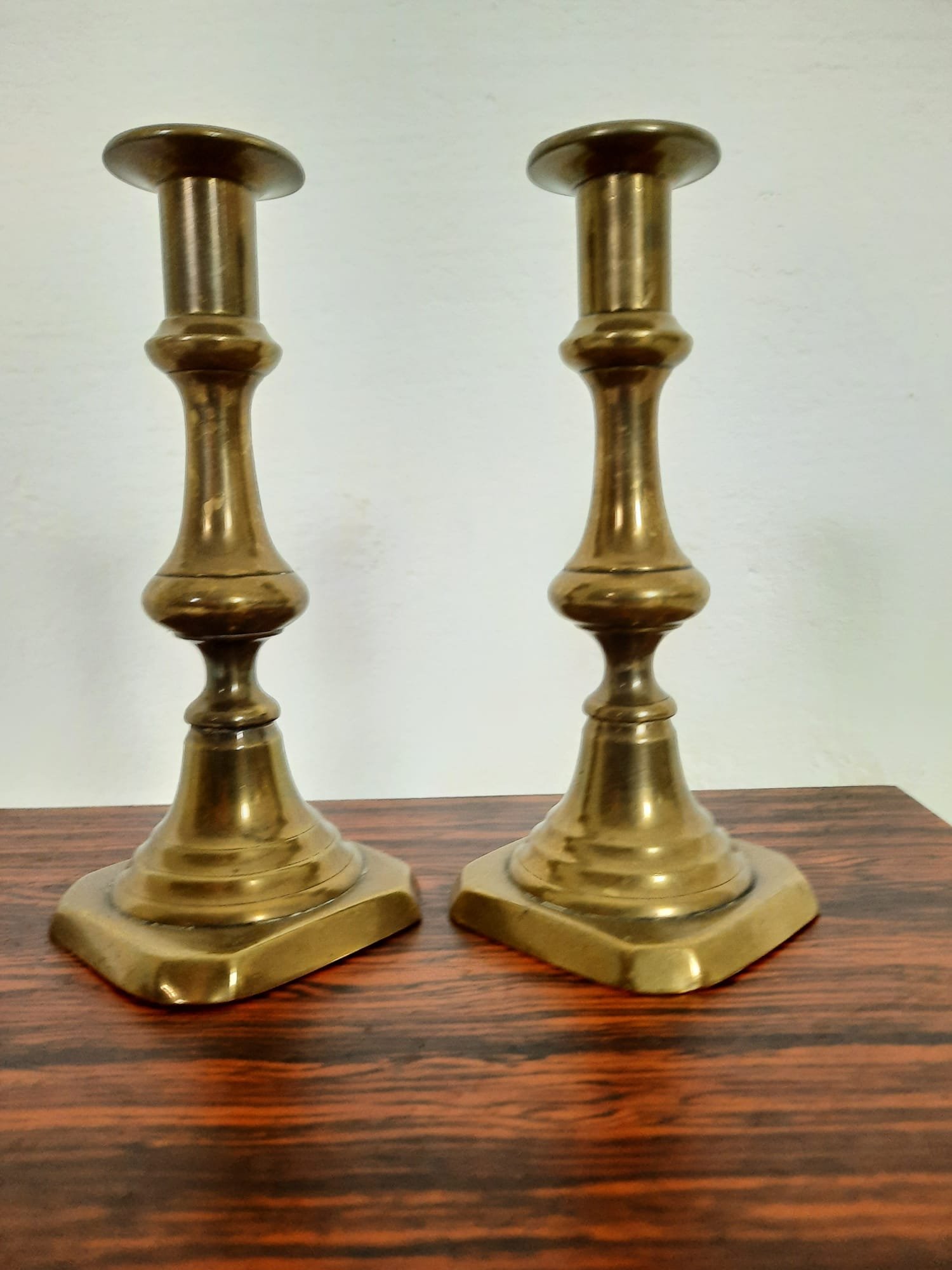 Koperen kandelaren met mooie glans.